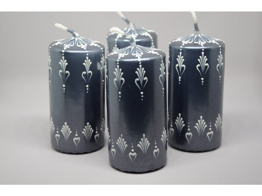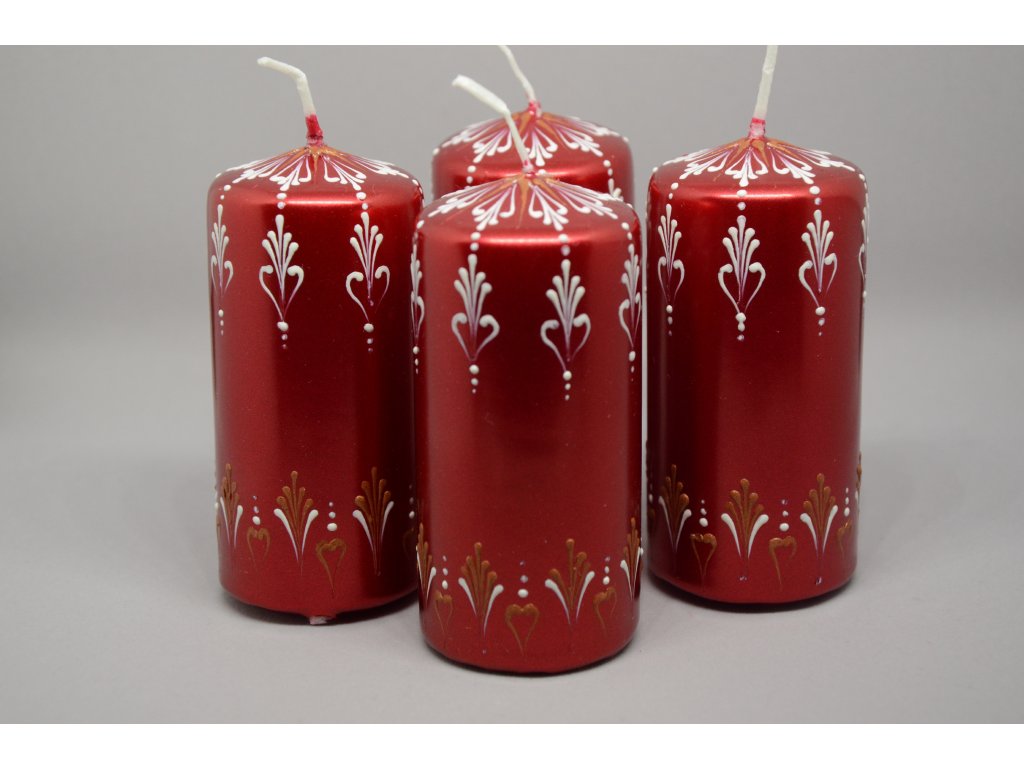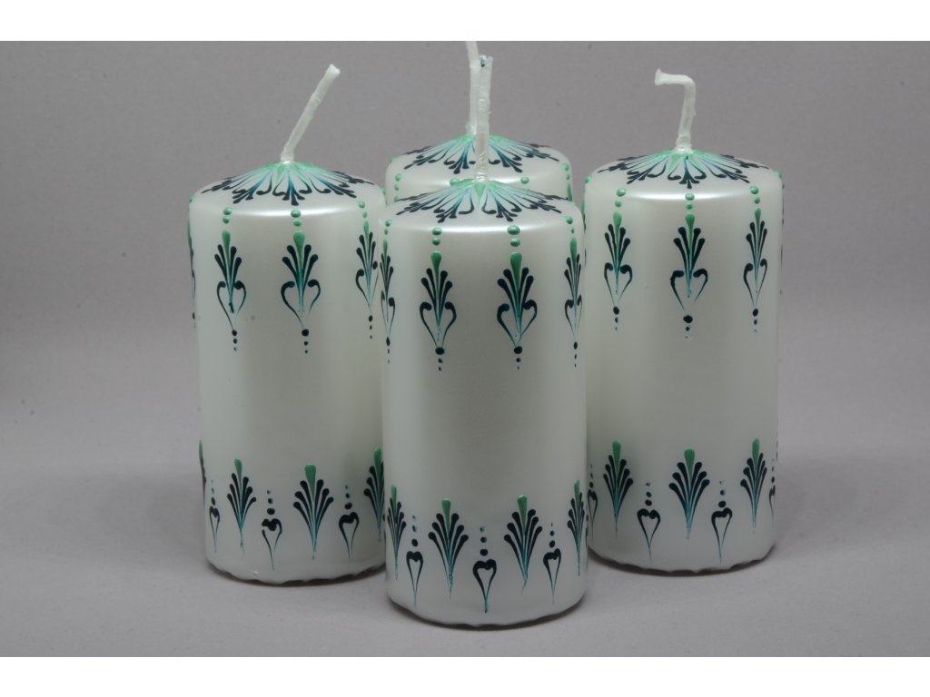 Sada ručně malovaných perleťových svíček s romantickým vzorem. Vzor ubývá současně s hořením svíčky, která se roluje dovnitř, obvykle nestéká.