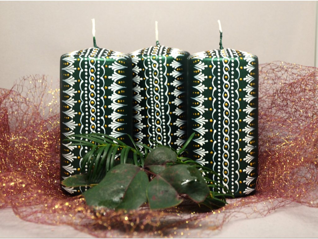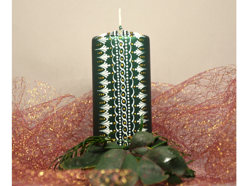 Elegantní svíčka ručně zdobená technikou voskového reliéfu (malování horkým voskem) představuje výjimečné spojení tradičního řemesla a nadčasové estetiky. Každý kus je originálním uměleckým dílem, vznikajícím s maximální pečlivostí, trpělivostí a smyslem pro detail.